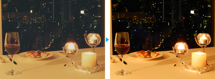 셔터속도와 ISO감도를 밸런스 있게 제어하여 배경까지 자연스러운 밝기로 묘사하므로 플래시 촬영도 안심입니다.