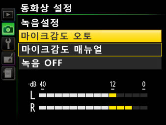 더욱 클리어한 스테레오 음성으로 동영상 촬영을 즐기고 싶다면, 별매 스테레오 마이크로 폰 ME-1을 추천합니다. ME-1을 D3300에 장착하여 동영상을 촬영하면, 오토 시에 렌즈의 구동 소리가 녹음되는 것을 경감할 수 있습니다. 마이크 감도는 오토/매뉴얼에서 선택 가능. 수동 설정 시(1~20에서 조정)는, 콘서트장 등의 주위의 소리가 클 때는 저 감도로, 여울의 흐르는 물소리 등 잔잔한 장소의 환경 소리 녹음에는 고감도로 설정합니다.