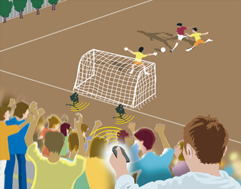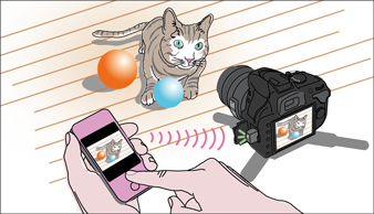 전파를 사용하는 리모컨이므로 송수신 사이에 나무 등이 있어서도 쾌적한 리모콘 촬영이 가능. 통신 거리는 WR-R10과 WR-T10의 조합은 최대 20 m※. 예를 들어 축구장의 사이드 라인에 둔 WR-R10에 딸린 카메라를 멀리 떨어진 관람석에서 WR-T10으로 조작할 수도 있습니다. 오토 포커스나 연속 촬영 조작도 가능합니다.
