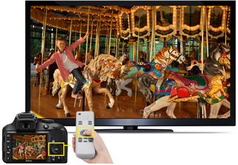 정지 화상이나 동화상의 재생을 하이비젼 TV에서 즐길 수 있는 HDMI(High-Definition Multimedia Interface)에 대응※1,※2. 인터페이스는 HDMI 미니 단자를 채용하고 있습니다. 더욱이 TV 리모컨※3에서 카메라의 재생 조작이 가능합니다.