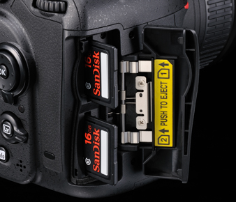 기록 메디어는 SDXC UHS-I메모리 카드에 대응. 화상 처리 엔진 EXPEED 3의 고속화와 맞물려 2410만 화소의 화상 데이터를 스피드하게 처리, 고속 읽기가 가능입니다. 더블 슬롯의 사용 방법도 다채롭게 준비하고 있으며 [순차기록]이나[백업 기록], RAW화상과 JPEG화상을 다른 카드에 기록하는[RAW+JPEG분할 기록]에서 선택할 수 있습니다. 카드 간에 기록화상의 복사도 가능. 동화상 촬영 시에는 공간이 충분한 카드로 기록하도록 지정할 수 있습니다.